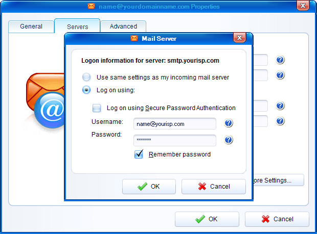 (You may have to call your ISP to get the correct SMTP Outgoing mail server settings.