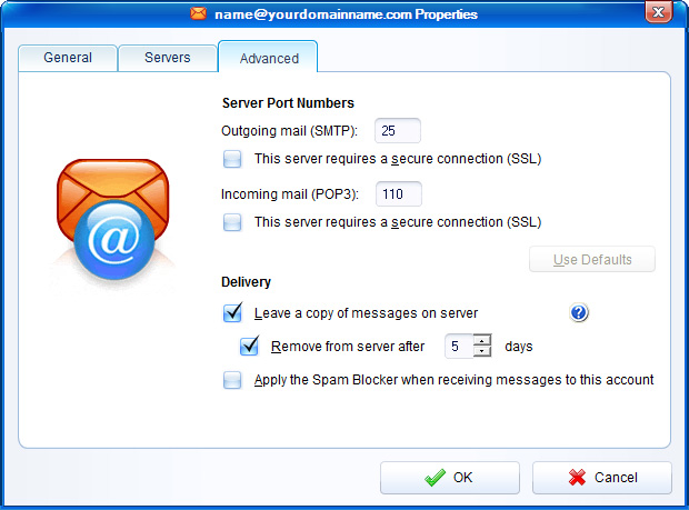 In the "Outgoing mail (SMTP)", type "25" in the field box.