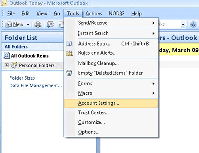 In the Menu bar click on "Tools" and then "Account Settings".