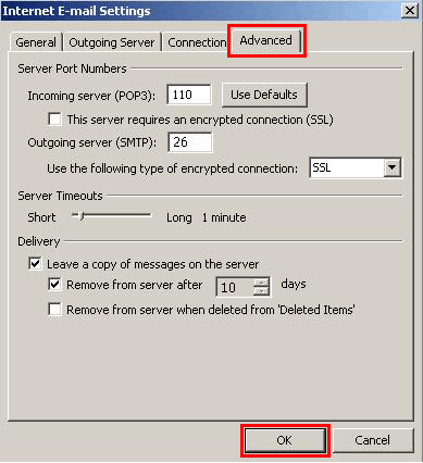 In the "Outgoing Server (SMTP)", type "26" in the field box.