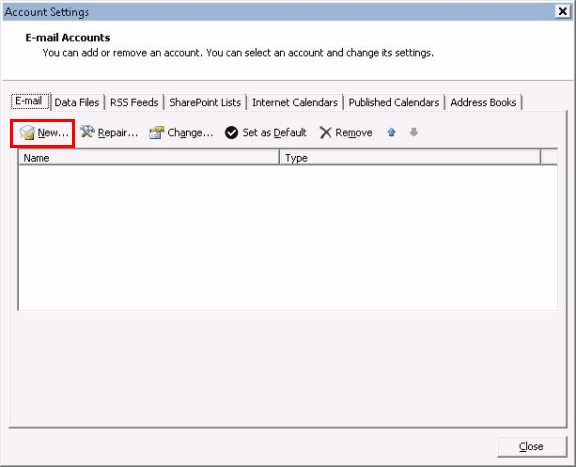 Click on the "New" button under the "E-mail" tab.