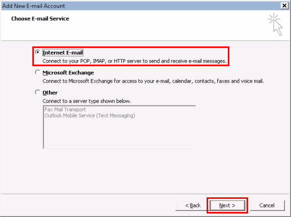 Select the option "Internet E-mail".