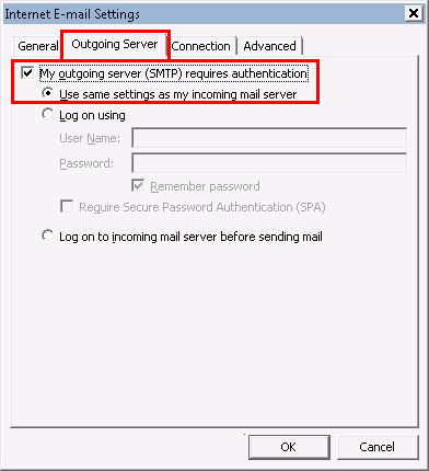 Click on the "Outgoing Server" tab.