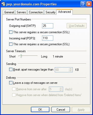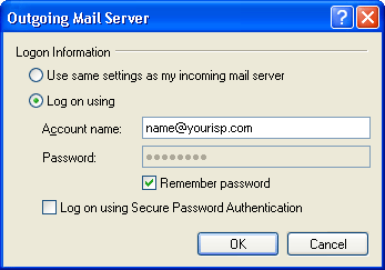 Some ISP's block the SMTP Relay causing outgoing messages to bounce. If you are still experiencing problems with outgoing mail after changing the port settings in the last example you may have to use you ISP's outgoing SMTP mail server settings. Please follow the instructions below.