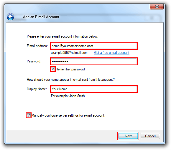 Type in "smtp.yourdomainname.com" in the "Outgoing mail server" field.