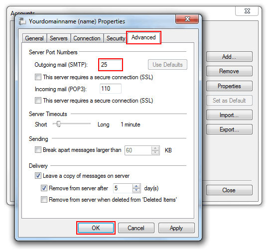 Under "Server Port Numbers", in the "Outgoing mail (SMTP):" field, type in "25".