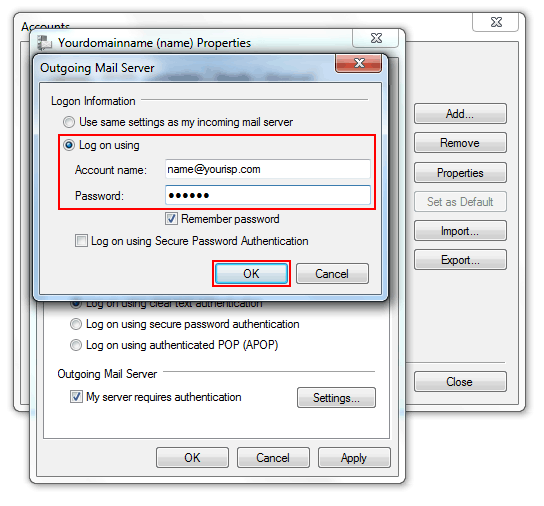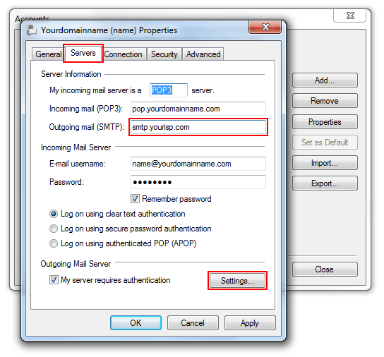 (You may have to call your ISP to get the correct SMTP Outgoing mail server settings.