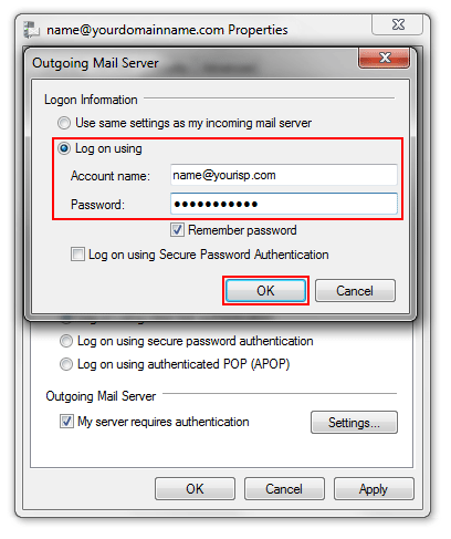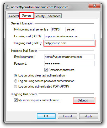 (You may have to call your ISP to get the correct SMTP Outgoing mail server settings.