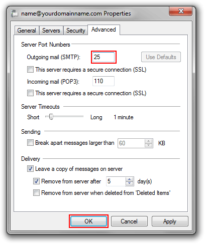 Under "Server Port Numbers", in the "Outgoing mail (SMTP):" field, type in "25".