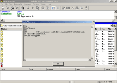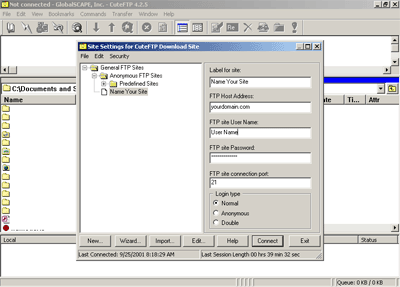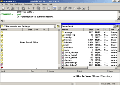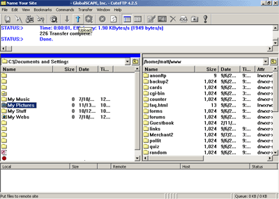 Cute FTP will now display a split screen. The window on the left contains the folders and files on your own computer. Use the drop down screen to browse your system.